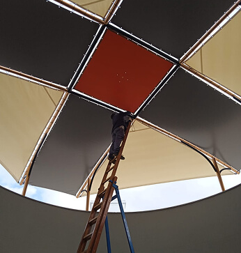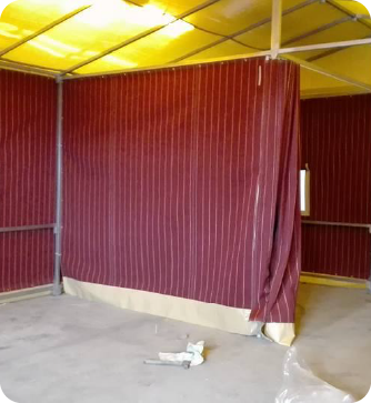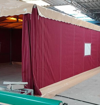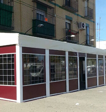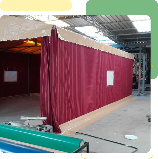 Realizamos todo tipo de casetas para romerías, tanto herrajes como lonas en una gran variedad de tejidos, con separaciones interiores para habitaciones o cocina, ventanas con rejilla y cierre con tapadera enrollable.