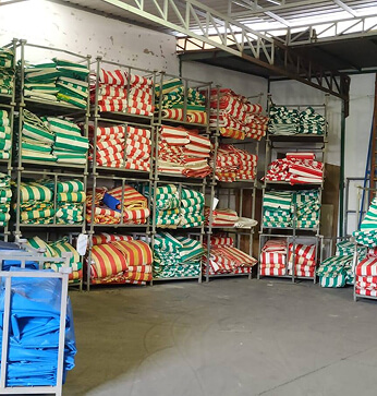 Disponemos de un amplio stock de toldos de medidas estandar para casetas de romerias y ferias