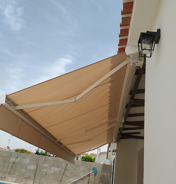 Es el típico toldo con brazos extensibles hacia adelante.