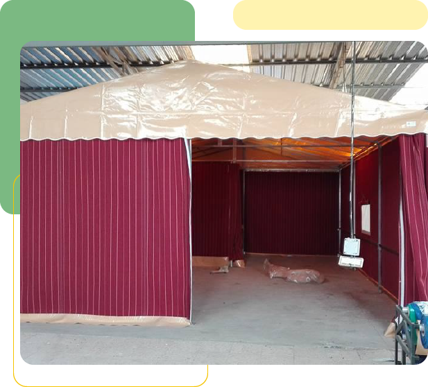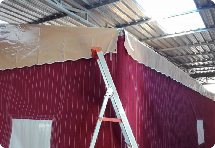 Realizamos todo tipo de casetas para romerías, tanto herrajes como lonas en una gran variedad de tejidos, con separaciones interiores para habitaciones o cocina, ventanas con rejilla y cierre con tapadera enrollable. Totalmente desmontables, de muy fácil montaje y desmontaje, todo el armazón en hierro galvanizado, para más información no dude en ponerse en contacto con nosotros
