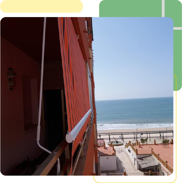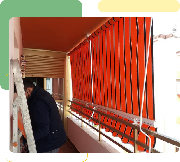 Toldos enrollables en vertical para uso exclusivo de balcones. Con la peculiaridad de que se puede fijar directamente el tubo inferior del toldo a la barandilla o desplazarlo hacia el frente 50 cm con un brazo plegado al tubo.